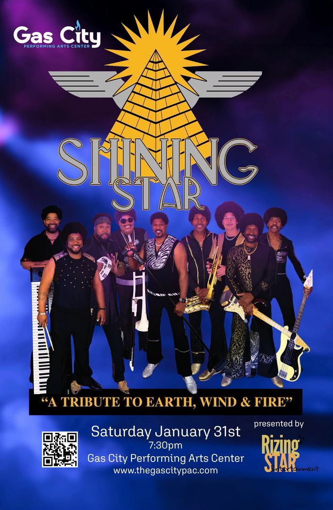 THE AMAZING RE-CREATION OF THE BAND, THE LEGENDS, THE ROCK AND ROLL HALL OF FAME INDUCTEES EARTH, WIND AND FIRE. SHINING STAR IS THE CLOSEST AND ONLY PRODUCTION TO EMBODY THE AURA OF THE 1970'S SUPER GROUP EARTH, WIND AND FIRE. THE MAGIC, THE LOOK THE MUSIC, THE VERSATILITY, THE VOCALS, THE ESSENCE , THE SONGS, THE ENERGY, THE HORNS, AND THE SPIRIT....